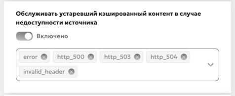 Опция Use Stale позволяет CDN использовать ранее кэшированные версии контента в случаях, когда получение актуальных данных с исходного сервера невозможно. Данная функциональность обеспечивает непрерывную доступность контента и помогает минимизировать перебои в обслуживании пользователей.