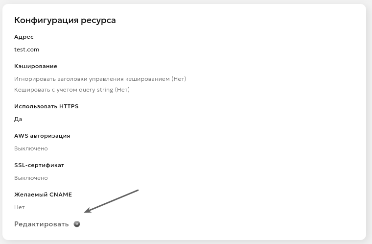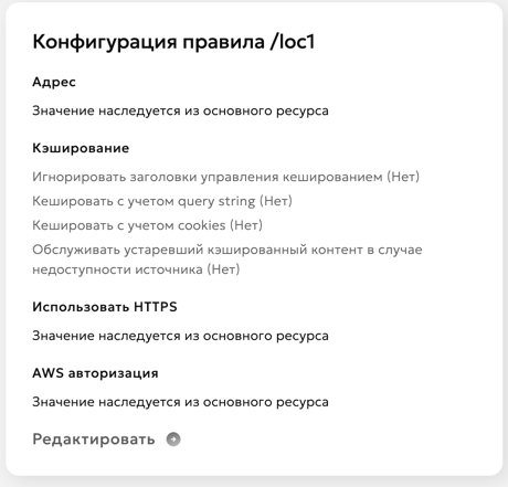 Помните, что каждое применение изменений конфигурации на сети CDN занимает до 15 минут. Во время применения изменений ресурс продолжает работать с предыдущей конфигурацией до полного обновления.