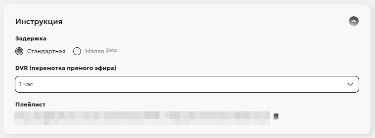 - Малая - уменьшенная задержка (для большинства зрителей задержка составит менее 10 сек)