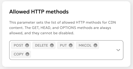 This section is designed for more fine-tuned configuration of the CDN network. Individual rules for any section/path allow you to manage headers, caching, CORS, authorization, and other parameters.